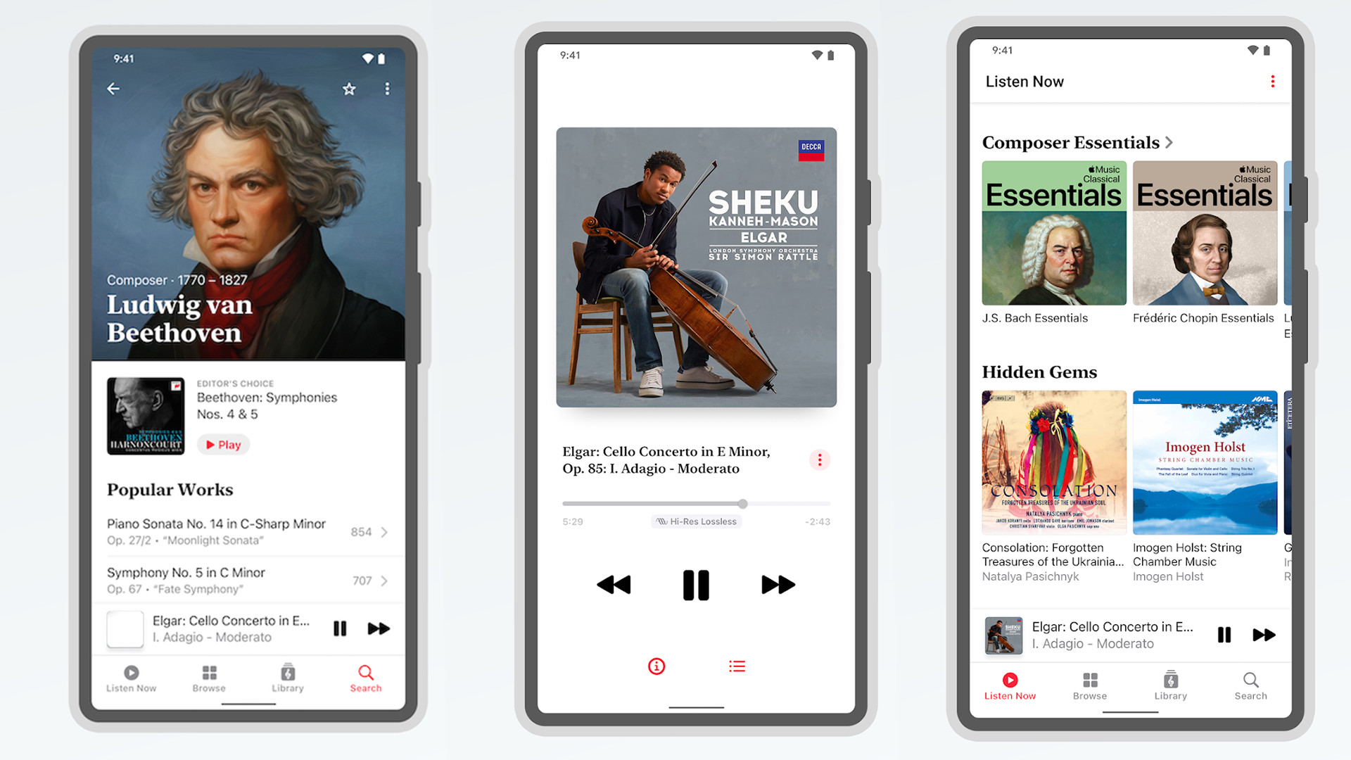 از ظاهر آن، این است تقریباً همان چیز به عنوان نسخه آیفون شما همچنان به بیش از پنج میلیون آهنگ کلاسیک بدون آگهی در صدای «تا 192 کیلوهرتز/24 بیت Hi-Res Lossless» دسترسی دارید. همچنین هزاران قطعه ضبط شده پشتیبانی از صدای فضایی، همان موتور جستجوی تخصصی برای کمک به کاربران برای یافتن موسیقی بر اساس آهنگساز یا کار (در میان معیارهای دیگر) و بیش از 700 لیست پخش تخصصی وجود دارد. نیازی به گفتن نیست که کیفیت هنوز وجود دارد. اپل در ارائه یک تجربه عالی در اندروید کوتاهی نمی کند.